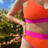 PITAYA VERSÃO PRAIA. Feito em malha texturizada especial para mar e piscina, em um vibrante tom de laranja com detalhes em rosa. Desenvolvido para valorizar suas curvas e proporcionar conforto e beleza para todos os tipos de corpos a beira mar.
