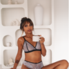 Homenagem a Bianca Andrade, influencer e empresária. Renda cinza com detalhes em preto. Fio dental.