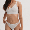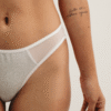 Modelo fio dental em lurex branco com traseira em tule duplo, inspirada no brilho de uma taça de espumante e nos fogos de artifício. Perfeita para começar o ano com desejos de prosperidade e glamour.
