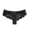 Calcinha fio em renda preta com detalhes em estilo corselet. Sexy, elegante e marcante.