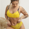 Calcinha Positano: modelo clássico não‑fio, toda em renda amarela vibrante que traduz a energia do verão italiano.