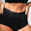 Modelagem não fio estilo boyshort com lateral ampla e costas retas que não cavam. Uma interpretação contemporânea da cueca feminina com máximo conforto.