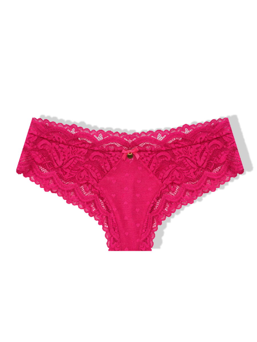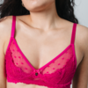 Renda pink com recortes em tule de corações. Sutiã com alças com reguladores dourados e lacinho central, delicada, divertida e com pingente Pitaya.