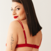 Compõe conjunto com Calcinha Desireé e Calcinha Cara. Em tule vermelho e alças duplas com acabamentos dourados banhados em ouro para um detalhe todos especial.