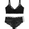 Preto porém delicado, brincando com a dualidade entre texturas: a sofisticação da renda francesa encontra o brilho sutil da maleável malha. O resultado é uma coleção elegante, intensa e atemporal.