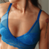 Compõe conjunto com calcinha Ciel e calcinha Bleu. Em tule e renda azul, com cobertura lateral maior. Médio suporte.