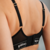Uma verdadeira obra de arte. Em tule preto, proporciona suporte e estilo. Faz conjunto com as calcinhas Estela e Aurora.