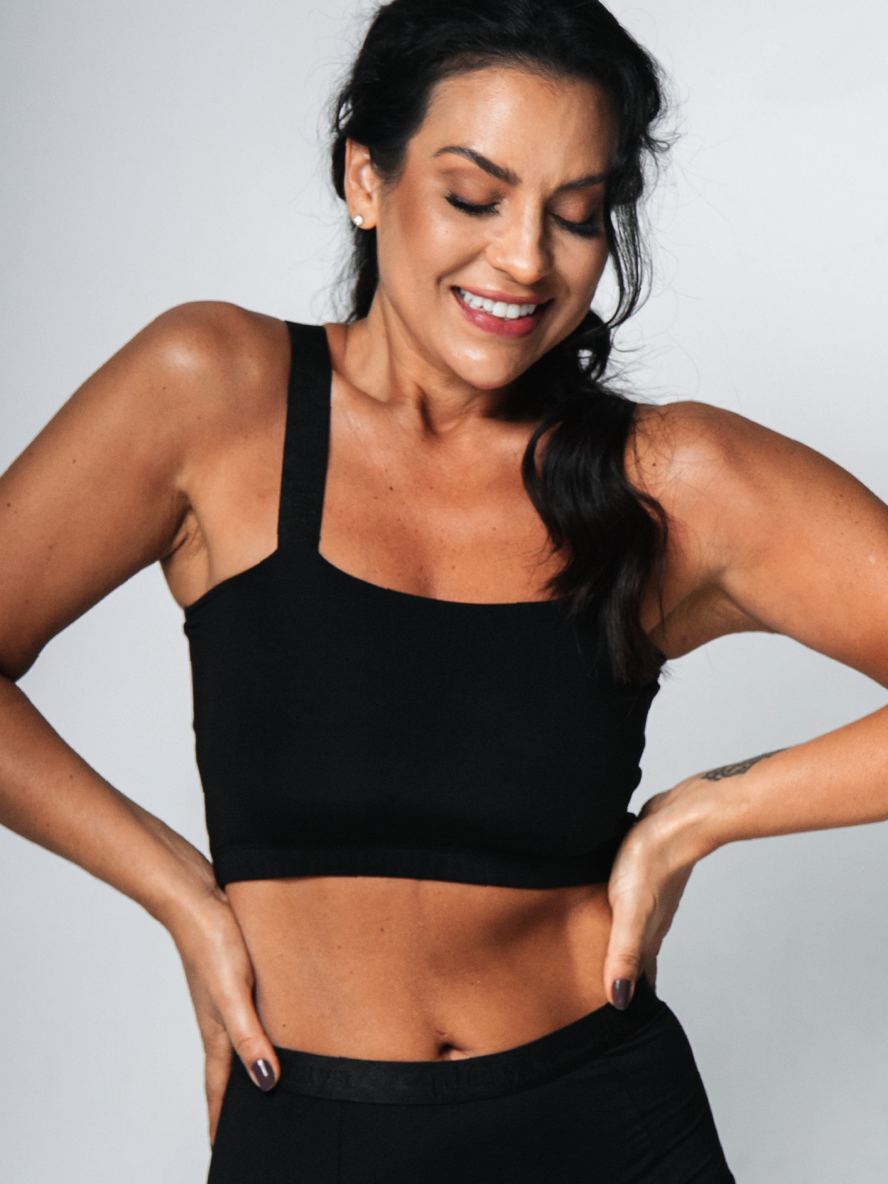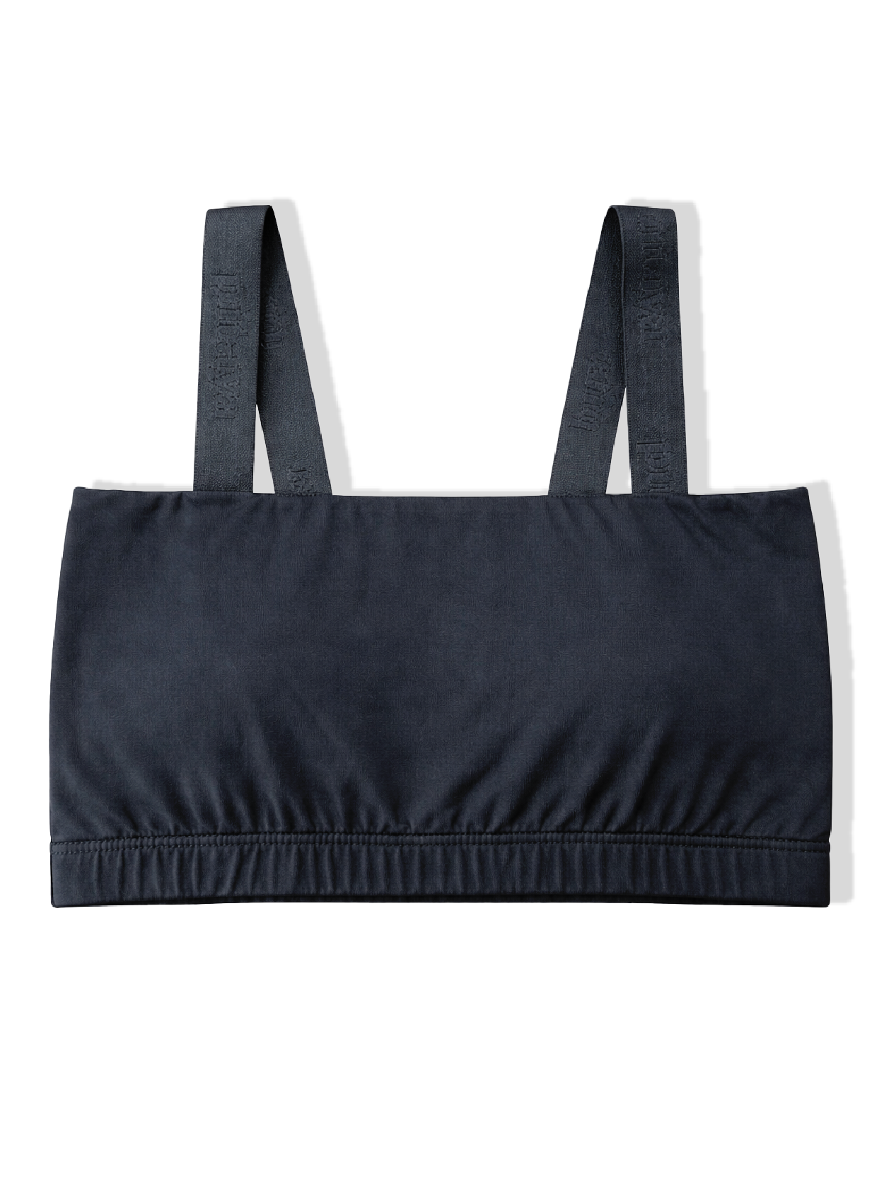 Sutiã bandeau com base reta e alto suporte, sem bojo e sem aro. Ideal para usar como lingerie ou como top em produções minimalistas.
