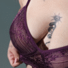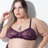 Sutiã em renda floral roxa, modelagem meia taça e alças ajustáveis. Delicado e confortável.
